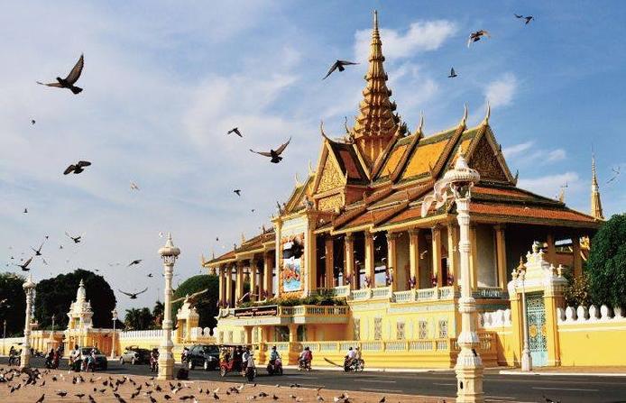 2. Royal Palace: The Royal Palace of Phnom Penh, also known as the Grand Palace of the Four Arms Bay, is located at the confluence of the Upper Mekong River, the Tonle Sap River, the Lower Mekong River and the Bassac River. It was built by King Norodom in 1866-1870. Represents the golden yellow line of the Buddhist imperial palace, resplendent and resplendent. It is divided into three parts, one is the large square of the palace, where flocks of pigeons walk on the green grass, it is very spectacular; the other is the part of the palace that is open to the outside world, the ticket is 25,000 riels, and you can see the main hall and some pavilions. The third part is not open, it is the place where the current king lives and activities.